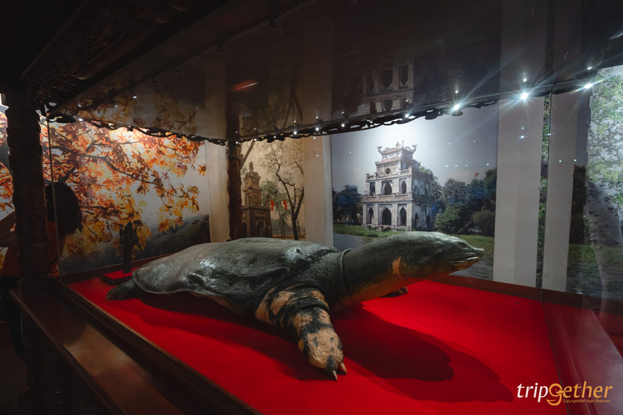 กลางทะเลสาบเราจะเห็น หอคอยเต่า (Thap Rua) อาคารสี่เหลี่ยมคล้ายเจดีย์โบราณ ตั้งอยู่กลางทะเลสาบ ใกล้กันนั้นยังมีวัดหง็อกเซิน (Ngoc Son Temple) ตั้งอยู่บนเกาะกลางทะเลสาบฮหว่านเกี๊ยม ภายในวัดมีสถานที่เก็บรักษาตะพาบน้ำแยงซีเกียง ขนาดใหญ่ 2 ตัว เชื่อกันว่าเป็นเต่าศักดิ์สิทธิ์ที่เคยอาศัยอยู่ในทะเลสาบฮหว่านเกี๊ยมนั่นเอง