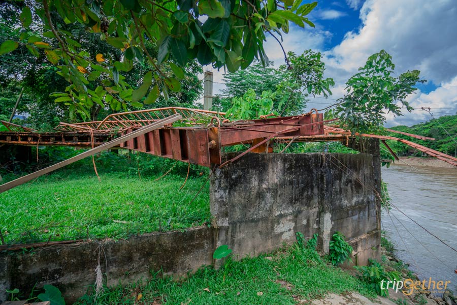 แต่เดิมบริเวณแม่น้ำซองด้านหน้าถ้ำ เป็นที่ตั้งของสะพานส้มที่เป็นสะพานเหล็กขนาดกลาง ซึ่งเป็นจุดไฮไลท์และมุมถ่ายรูปสุดฮิตของที่นี่ แต่ในปัจจุบันสะพานส้มได้ถูกน้ำพัดจนชำรุดและไม่สามารถใช้งานได้ จึงทำให้เราจำเป็นจะต้องนั่งเรือข้ามไปนั่นเอง