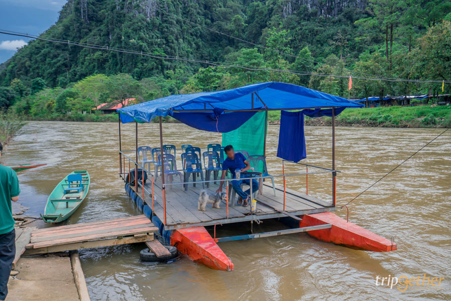 ที่ตั้งอยู่ก่อนทางขึ้นไปบนถ้ำ ติดกับทางน้ำเป็นที่จำหน่ายตั๋วเข้าชม ราคาอยู่ที่คนละ 15,000 กีบ หรือคิดเป็นเงินไทยราวๆ 25 บาท เท่านั้นเอง
