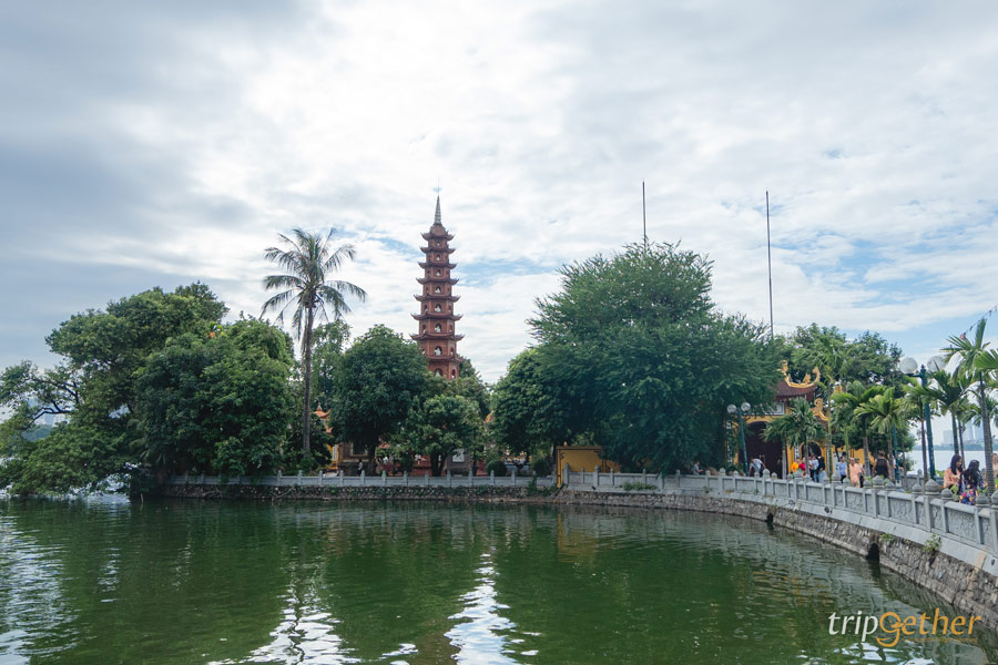 ออกจากวิหารกวานแถ่งห์ เลาะตามถนนกลางทะเลสาบมาเรื่อยๆ เพื่อมาเที่ยวกันต่อที่เจดีย์เตริ่นกว็อก เจดีย์ที่เก่าแก่ที่สุดในเวียดนาม มีความสูงกว่า 10 ชั้น ตั้งตระหง่านอยู่บนเกาะกลางทะเลสาบเวสต์เลค