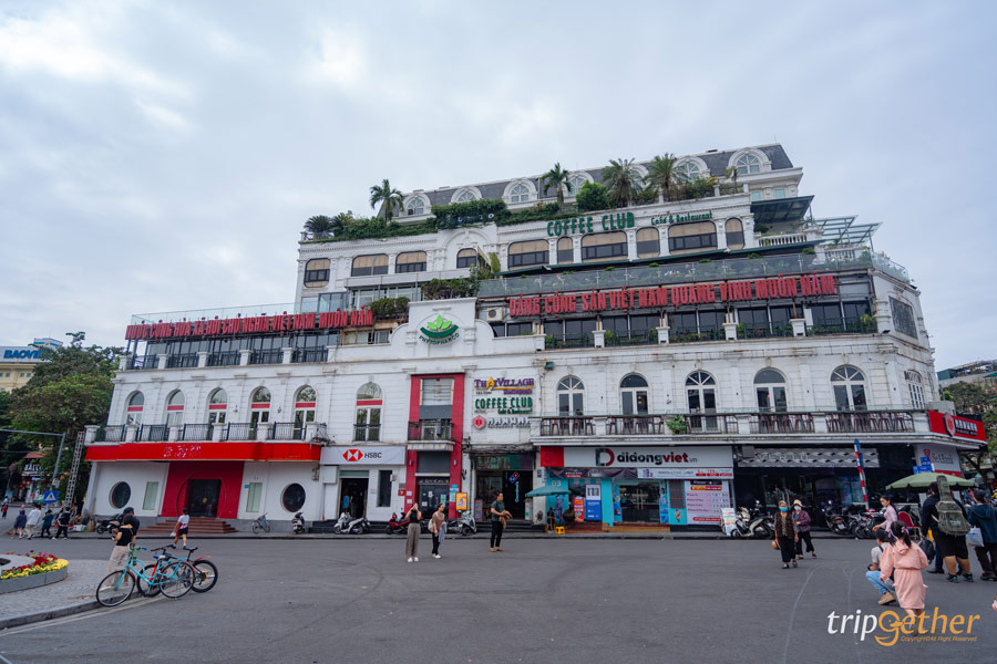 เดินเล่นชมวิวทะเลสาบแล้ว เราก็ออกมาเดินเล่นกันต่อในย่าน Old Quarter ย่านไฮไลท์สุดคึกคักที่อยู่ติดกับทะเลสาบฮว่านเกี๋ยม ซึ่งหนึ่งในมุมแลนด์มาร์กเลยก็คือตึก Aldo (เขาเรียกกันแบบนั้นนะ) ตั้งอยู่ตรงกลางถนนบนจัตุรัส Dong Kinh Nghia Thuc Square แบบพอดี เป็นอีกหนึ่งภาพจำของกรุงฮานอยเลยก็ว่าได้