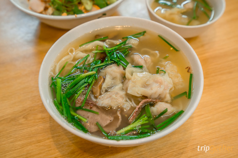 อีกชามเป็นเมนู บะหมี่เกี๊ยวน้ำ (Wonton Noodle Soup) รสชาติคล้ายๆ กับบะหมี่เกี๊ยวน้ำบ้านเรา แต่ที่นี่จะเพิ่มต้นหอมใส่ลงไปในชามด้วย ราคาอยู่ที่ 40,000 VND