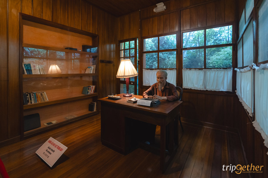ภาพและสิ่งต่างๆ ที่จัดแสดงมีทั้งภาพถ่ายของโฮจิมินห์และคณะ จดหมายเรื่องราวต่างๆ รวมทั้งข้าวของเครื่องใช้ อาวุธยุทโธปกรณ์ต่างๆ ในสมัยสงครามให้ได้เดินชมกันแบบเพลินๆ อีกทั้งยังมีหุ่นขี้ผึ้งจำลองของโฮจิมินห์ที่นั่งทำงานอยู่ในบ้านพักอีกด้วย