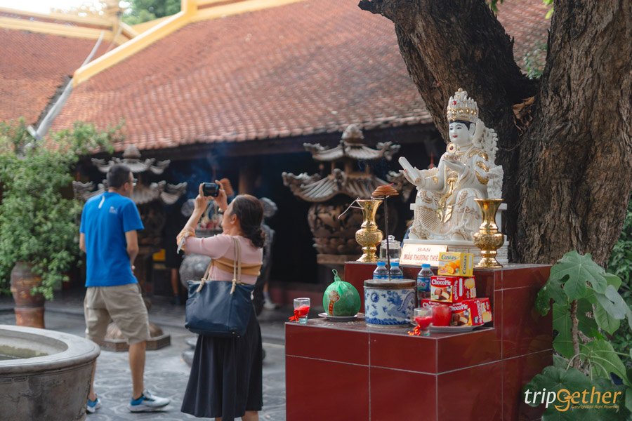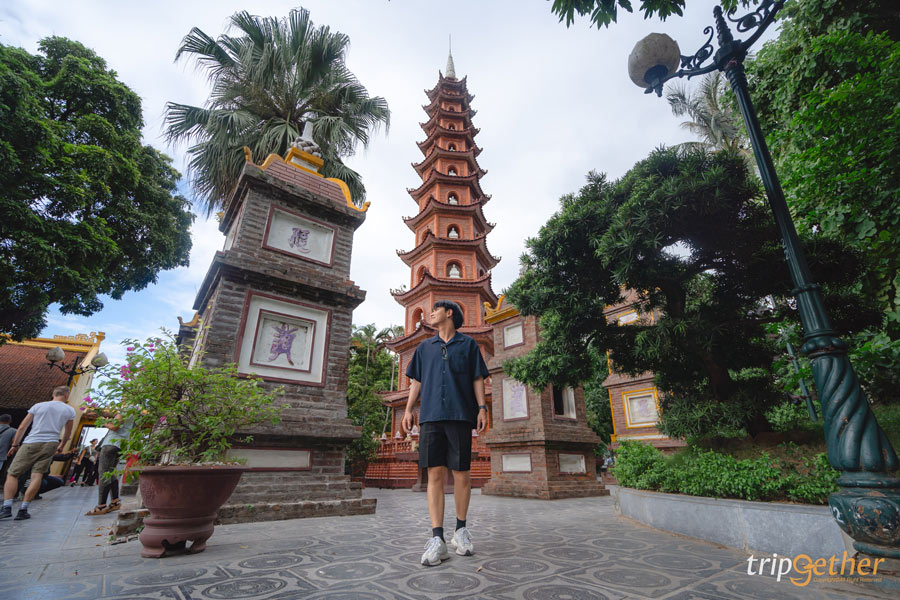 เจดีย์เตริ่นกว็อก อีกหนึ่งที่เที่ยวฮานอยที่สายมูต้องไม่พลาด เจดีย์องค์นี้เป็นสีแดงอิฐที่ตั้งตระหง่านสูงกว่า 11 ชั้นอยู่ริมทะเลสาบ โดยแต่ละชั้นจะมีซุ้มเล็กๆ ประดิษฐานพระพุทธรูปสีขาวอยู่ด้านในรายรอบเจีดย์ นอกจากนี้รอบๆ พื้นที่ของเจดีย์เตริ่นกว็อก ยังมีจุดไหว้ต่างๆ อย่างวิหารไม้ที่มีพระพุทธรูป พระอรหันต์ พระศรีมหาโพธิ์เก่าแก่ที่เป็นของขวัญจากกษัตริย์อินเดีย รวมทั้งมุมถ่ายรูปสวยๆ อีกหลายมุม