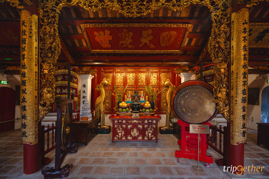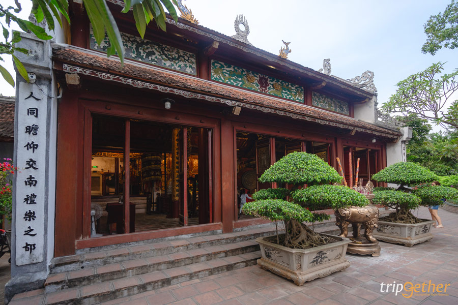 วัดหง็อกเซิน วัดเก่าแก่ที่ตั้งอยู่บนเกาะกลางน้ำในทะเลสาบฮว่านเกี๋ยม ตัววัดเป็นอาคารชั้นเดียว เป็นศิลปะเวียดนามโบราณที่ได้รับอิทธิพลมาจากวัฒนธรรมจีน ภายในเป็นที่ประดิษฐานของเทพเจ้าให้ได้กราบสักการะเพื่อความเป็นสิริมงคล ด้านหน้าของวิหารเป็นศาลาสีแดงที่มีความสวยงาม สามารถนั่งพักพร้อมกับชมวิวทะเลสาบฮว่านเกี๋ยมไปพร้อมๆ กัน บริเวณรอบๆ ของวัดมีไม้ดัดพร้อมกับกระถางโบราณตกแต่งไว้โดยรอบ นอกจากนี้อาคารด้านข้างวิหารเป็นที่เก็บรักษาร่างของตะพายน้ำแยงซีเกียงที่มีขนาดใหญ่ 2 ตัว ซึ่งเชื่อกันว่าเป็นเต่าศักดิ์สิทธิ์ที่เคยอาศัยอยู่ในทะเลสาบให้ได้ชมกันอีกด้วย