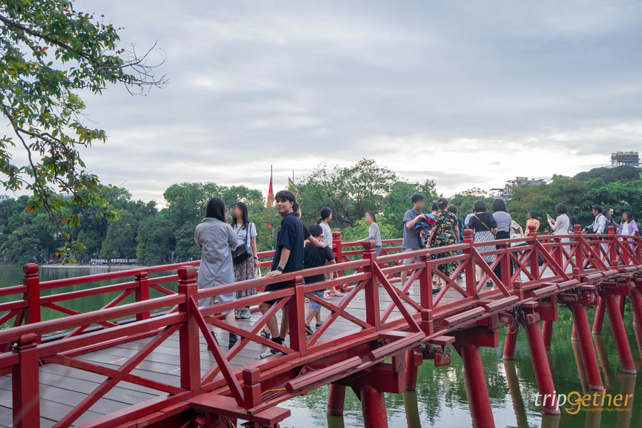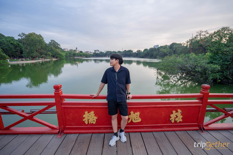 สะพานเทฮุก หรือสะพานพระอาทิตย์ เป็นหนึ่งในแลนด์มาร์กของกรุงฮานอย เป็นสะพานไม้ที่ทาด้วยสีแดงสด ทอดยาวโค้งเชื่อนระหว่างพื้นที่รอบๆ ทะเลสาบกับวัดหง็อกเซิน ใครที่มาเที่ยวฮานอยต้องไม่พลาดที่จะโพสท่าสวยๆ บนสะพาน พร้อมกับฉากหลังที่เป็นวิวทะเลสาบและตึกสวยๆ ของฮานอยกันดูนะ