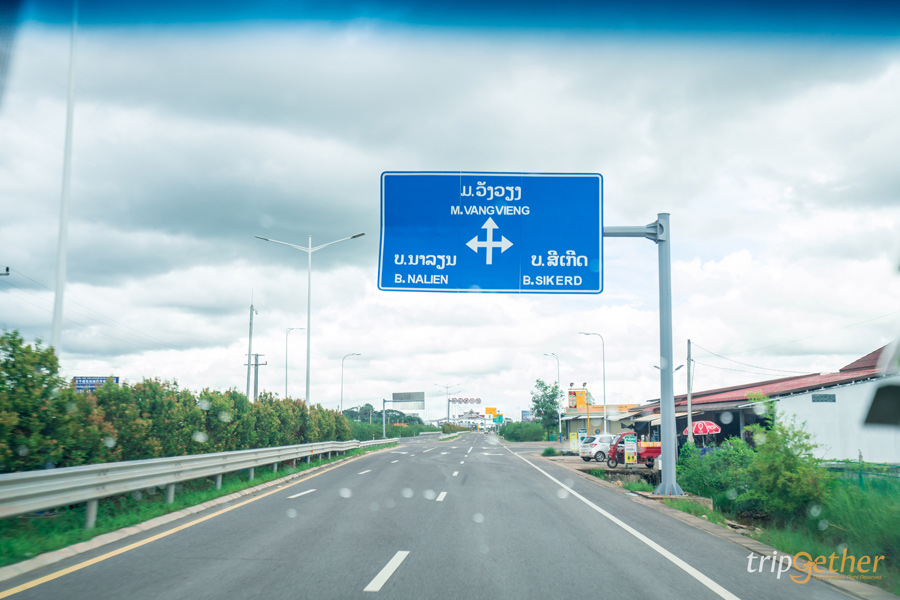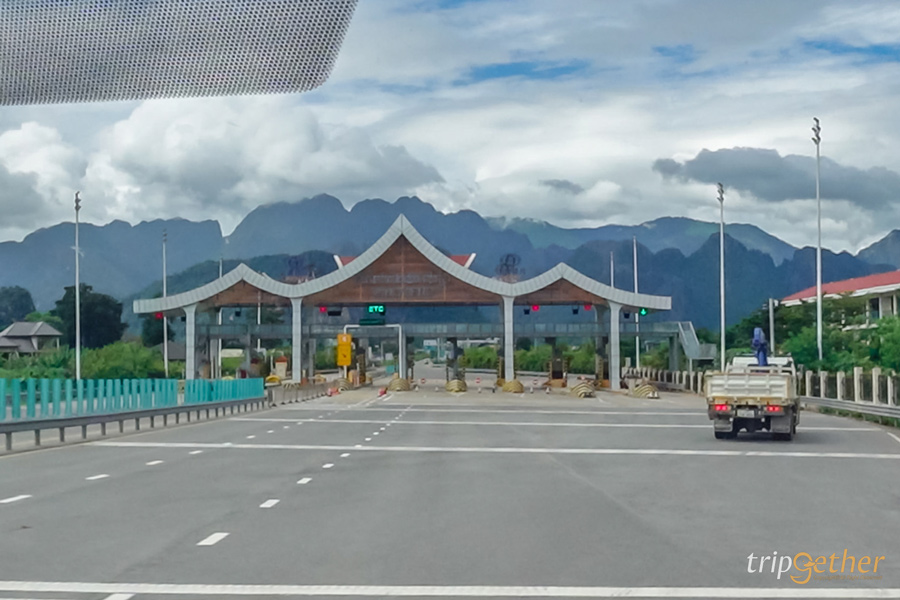 ทางด่วนที่ สปป.ลาว เป็นทางตรงวิ่งยาว ถนนถือว่าดีเลยแหละทุกคน เพราะเค้าเพิ่งเปิดให้ใช้ได้ไม่นาน แถมระหว่างเส้นทาง เงียบมาก แทบไม่มีรถตามหลังหรือสวนเรามาเลย เหตุผลหนึ่งก็น่าจะเป็นเพราะค่าผ่านทางอยู่ที่ราวๆ 300 – 400 บาท เลย (อันนี้พี่คนขับรถเล่าให้ฟังนะ) แต่เราก็ไม่ต้องจ่ายค่าผ่านเองด้วย เพราะรวมในค่ารถที่เราเหมาจาก อัศวิน อินเตอร์ ทัวร์ เรียบร้อย