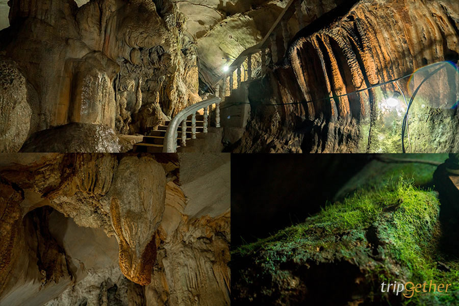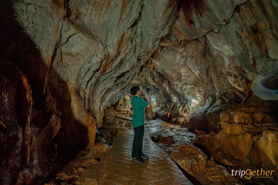ทางเดินในถ้ำส่วนมากจะเป็นโถงยาวเชื่อมกัน สลับกับบางช่วงที่มีทางขึ้น ทางลงบ้าง แต่ไม่ว่าจะเดินไปทางไหน เราก็สามารถชมความสวยงามของศิลปะธรรมชาติ และตอนแรกเราก็คิดว่าบรรยากาศในถ้ำก็คงเหมือนถ้ำทั่วๆ ไปที่เราเคยไปกันมา แต่พอเดินมาได้สักพักถึงสัมผัสได้ถึงความสบายตัวมากๆ เพราะในถ้ำจะมีช่องลมที่มีลมเย็นๆ พัดเวียนอยู่ตลอดๆ เย็นขนาดที่ว่าเหมือนลมจากแอร์ยังไงอย่างงั้นเลย