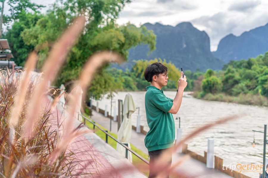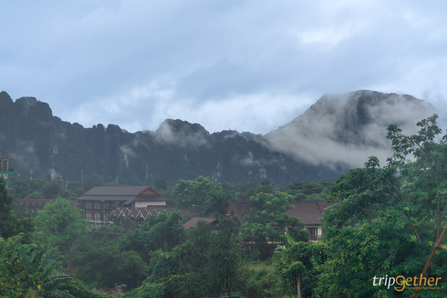 จากวัดสินไชยารามเดินทางต่อมาที่วังเวียง ใช้เวลาประมาณชั่วโมงนิดๆ พอมาถึงวังเวียงเท่านั้นแหละร้องว้าว ตาลุกวาวเลย คือเอางี้นะภูเขาที่เมืองเฟืองว่าสวยแล้ว มาเจอภูเขาที่วังเวียงนี่แบบ สวยมาก ภูเขาหินปูนลูกใหญ่เรียงซ้อนกันเหมือนม่านขอบฟ้ามากๆ