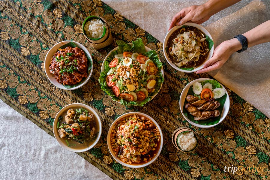 เมนูอาหารของที่ร้านจะเป็นเมนูอาหารลาวแบบหลวงพระบางทั้งหมดเลย ไม่ว่าจะเป็นไส้อั่วที่เป็นสูตรของหลวงพระบาง ตำหลวงพระบางที่เส้นมะละกอจะเป็นเส้นบางและใหญ่ ไข่ลูกเขยที่ไม่เหมือนของบ้านเรา ที่นี่จะมีรสชาติคล้ายๆ กับน้ำซอสของสปาเก็ตตี้ ปลาสมุนไพร และสลัดผักน้ำที่ใช้สูตรแบบสลัดหลวงพระบาง