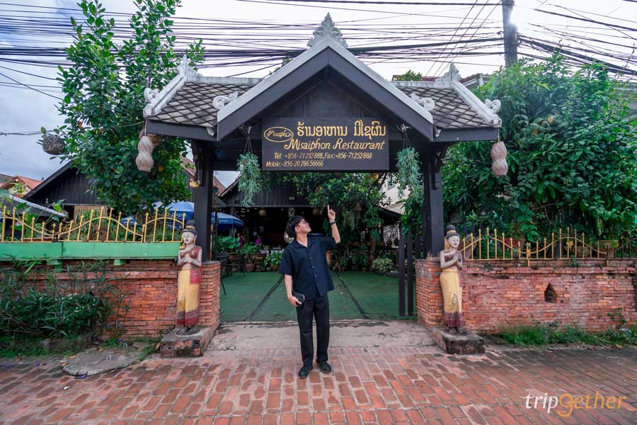 จากน้ำตกตาดแส้ เดินทางกันต่อเพื่อเข้าไปในตัวเมืองหลวงพระบาง และแวะมากินข้าวกันที่ร้านอาหารมีไชผล ซึ่งร้านนี้เป็นร้านอาหารตำรับหลวงพระบางแท้ๆ ทั้งตัวร้านอาคารไม้เปิดโล่ง การตกแต่งบรรยากาศด้านในที่ใช้วัสดุจากธรรมชาติและอุปกรณ์เครื่องมือทางการเกษตรของคนในพื้นที่