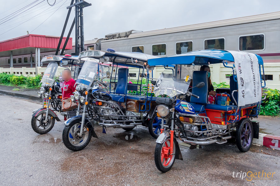 เดินมาแถวๆ หน้าสถานี เราจะสังเกตเห็นรถสามล้อที่คล้ายกับรถตุ๊กๆ ในกรุงเทพฯ จอดเรียงรายกันอยู่ แต่คนที่นี่เรียกว่า รถจัมโบ้ เป็นรถคันเล็กๆ ที่จะคอยรับ – ส่ง นักท่องเที่ยวและชาวบ้านจากสถานีรถไฟหนองคายไปยังหน้าด่านสะพานมิตรภาพไทย – ลาว ราคาก็จะอยู่ที่ประมาณ 40 – 50 บาท (แล้วแต่ช่วงราคาน้ำมันนะทุกคน)