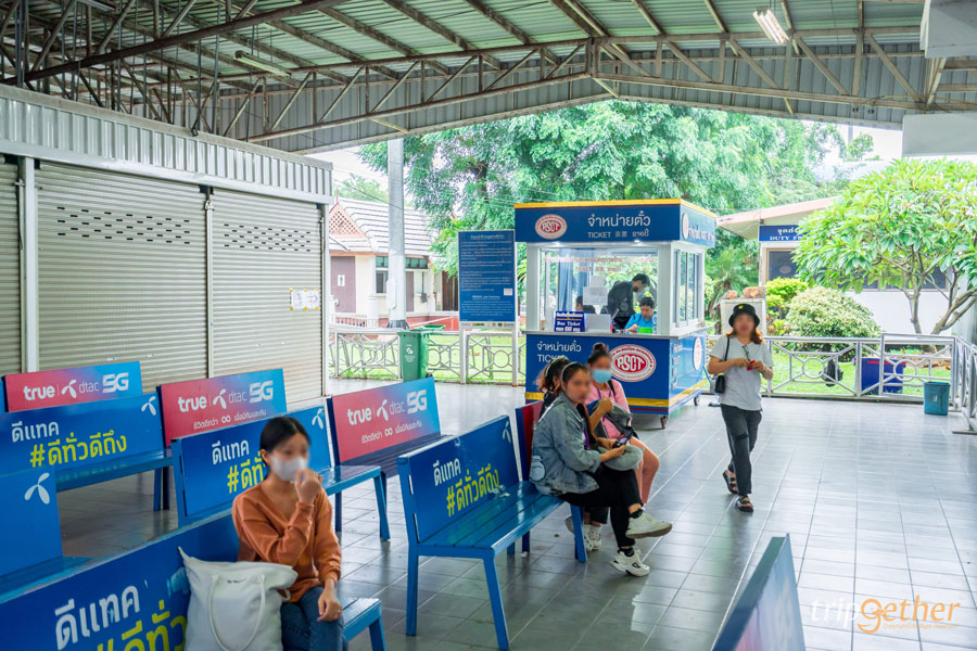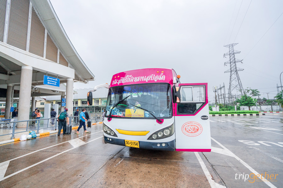 ขั้นตอนการผ่าน ตม.ไทยก็ไม่มีอะไรมาก เพียงแค่ยื่นหนังสือเดินทาง (passport) ให้เจ้าหน้าที่ลงตราประทับ แล้วผ่านไปได้เลย พอผ่านออกมาจากอาคารปุ๊บ เราจะเห็นตู้ขายตั๋วรสบัสเลย ซื้อกี่ใบ ไปกี่คน ก็แจ้งกับคนขายตั๋วได้เลย ราคาใบละ 30 บาทเท่านั้นเอง