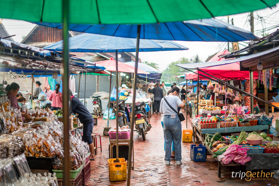 อิ่มบุญกันแล้ว ก็มาเติมความอิ่มท้องกันต่อที่ตลาดเช้าหลวงพระบาง บอกเลยว่าเดินเพลินมากๆ นอกจากบรรยากาศจะคึกคักแล้ว ยังมีของขายเยอะมากๆ ทั้งของสด ผัก ผลไม้ ไปจนถึงของกินและขนมพื้นบ้าน