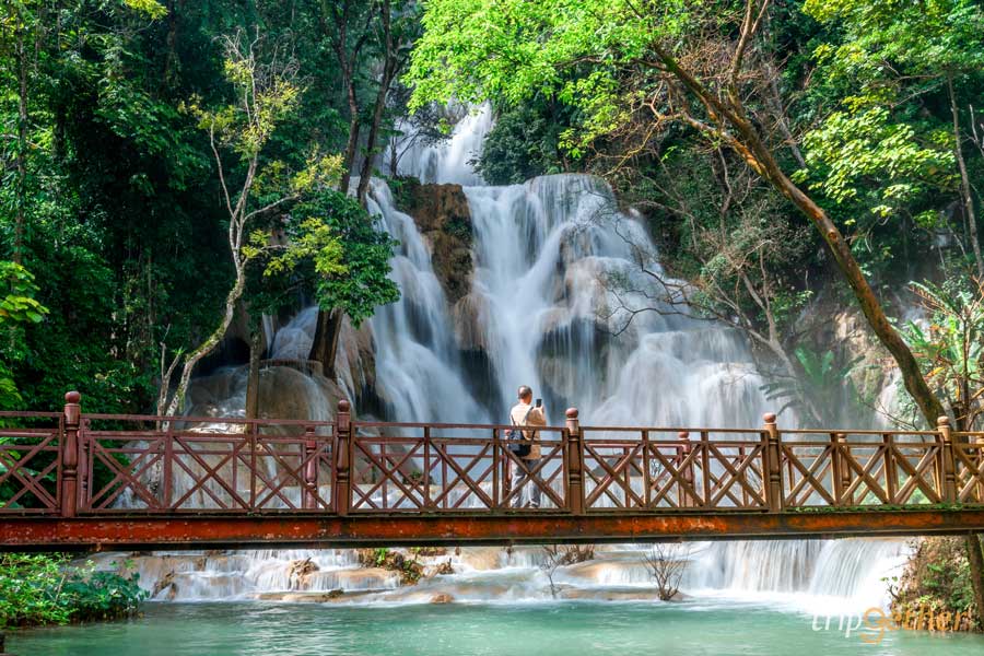 โลเคชั่นแรกของการเที่ยวหลวงพระบางในช่วงหน้าฝน แนะนำให้ทุกคนปักหมุดมาที่ น้ำตกตาดแส้ ซึ่งเป็นน้ำตกที่ต้องมาให้ถูกช่วงเวลา ถึงจะได้ชมความสวยงาม เพราะหลังจากหมดช่วงนี้ไปที่นี่จะไม่มีน้ำ
