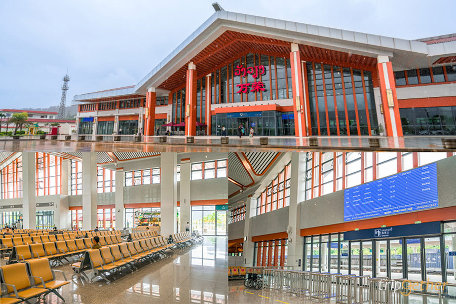 โบกมือลาพี่คนขับรถแล้ว เราก็เดินเข้ามาในสถานีรถไฟวังเวียง ซึ่งขั้นตอนการเข้าไปด้านในเหมือนกับที่สนามบินเลย คือแสดงหน้าหนังสือเดินทาง พร้อมกับแนบตั๋วรถไฟ แล้วเอาสัมภาระใส่ถาดผ่านเครื่องแสกน ซึ่งด้านในของอาคารผู้โดยสารกว้างมาก มีที่นั่งเยอะ รวมทั้งมีจอให้เราเช็คตารางเวลารถได้ด้วย