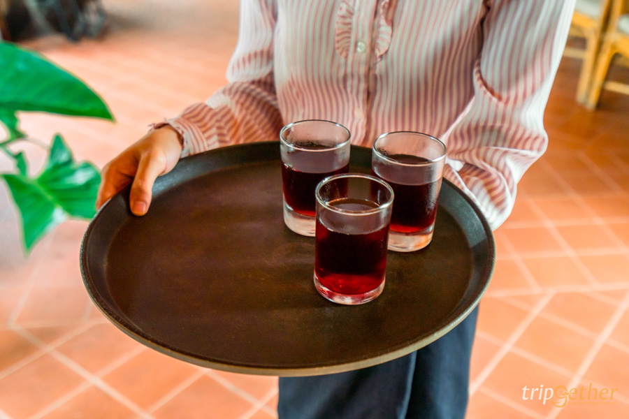 พอเรามาถึงปุ๊บทางโรงแรมก็เสิร์ฟ welcome drink ให้เลย เป็นน้ำผึ้งมะนาวอัญชัน สดชื่นมากๆ ก่อนที่จะพาเราไปที่ห้องพักซึ่งอยู่ที่อาคารด้านข้างของล็อบบี้