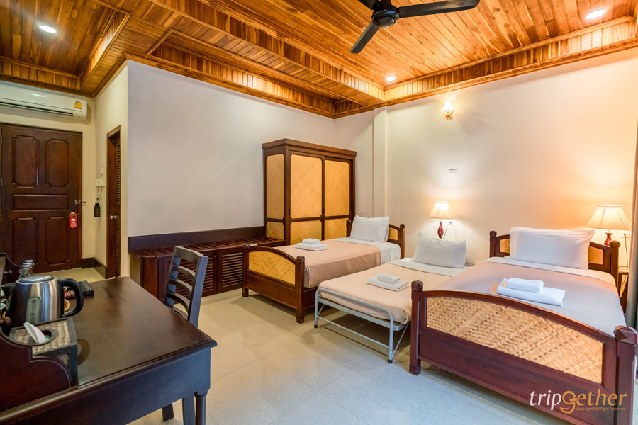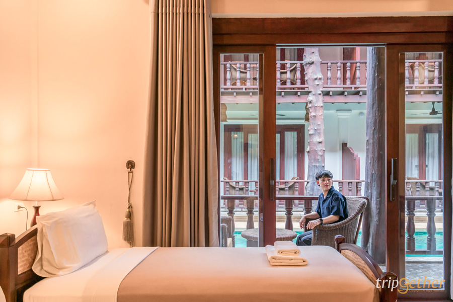 ภายในห้องพักก็สวยไม่แพ้ด้านนอกเลย เน้นเป็นการตกแต่งแบบผสมผสานอย่างที่บอกไป มีพื้นที่กว้าง เฟอร์นิเจอร์ครบเลย ทั้งตู้เสื้อผ้า กาน้ำร้อน ผ้าขนหนู ไดร์เป่าผม ซึ่งห้องเราทางโรงแรมได้เสริมเตียงไว้ให้แล้วเรียบร้อย