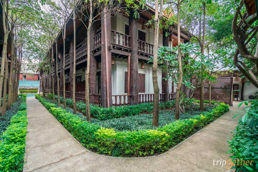 นี่ เป็นไง อาคารของโรงแรมสวยมากๆ ใช้เสาไม้ทั้งต้น มีมนต์ขลังจริงอะไรจริง