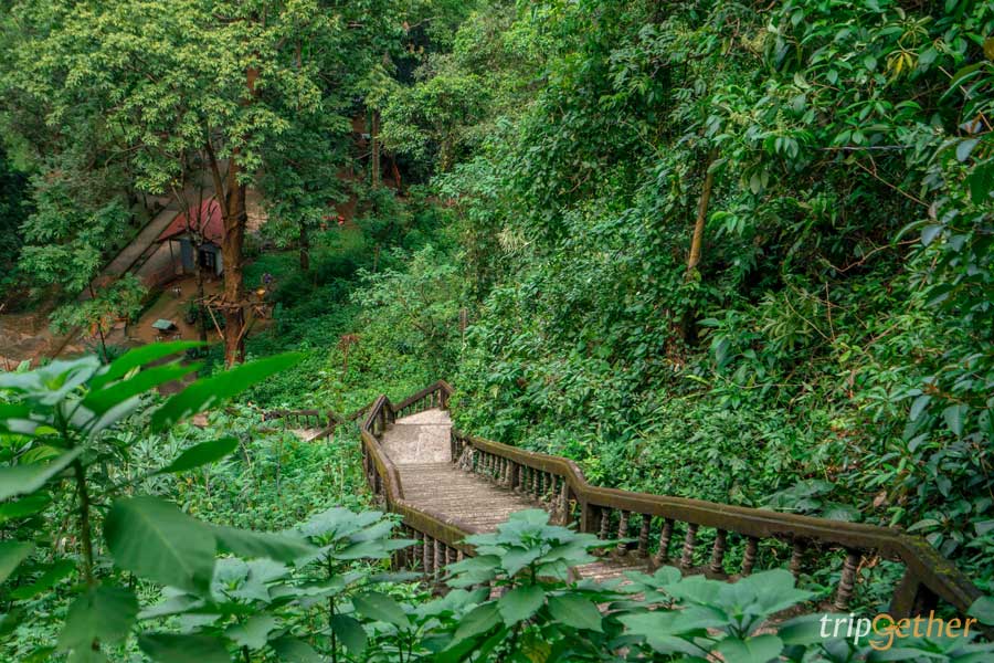 นั่งรถไฟฟ้ามาถึงด้านบนทางเข้าอุทยาน จะมีเจ้าหน้าที่ตรวจตั๋วอีกครั้ง พอผ่านแล้วก็เดิน และเดินยาวๆ ไปที่น้ำตกได้เลยทุกคน!