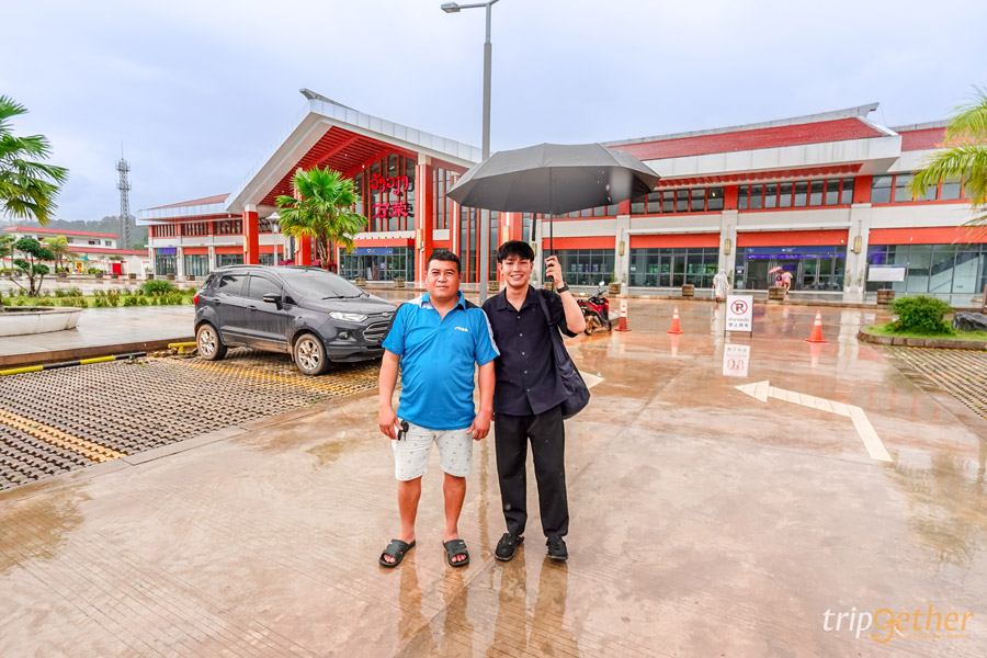 ออกจากบลูลากูนมาได้ประมาณ 15 นาที ก็มาถึงสถานีรถไฟวังเวียงเรียบร้อย ต้องบอกเลยว่าตลอด 3 วันที่ผ่านมา พี่คนขับรถดูแลเราดีมากๆ ตั้งแต่รอรับที่หน้าด่านไปจนถึงช่วยหาร้านอาหาร เรารีเควสว่าอยากไปไหน พี่จัดให้แบบไม่ขัด แถมยังได้คำแนะนำดีๆ ก่อนจากกันก็อดไม่ได้ที่จะถ่ายรูปคู่สักหน่อย