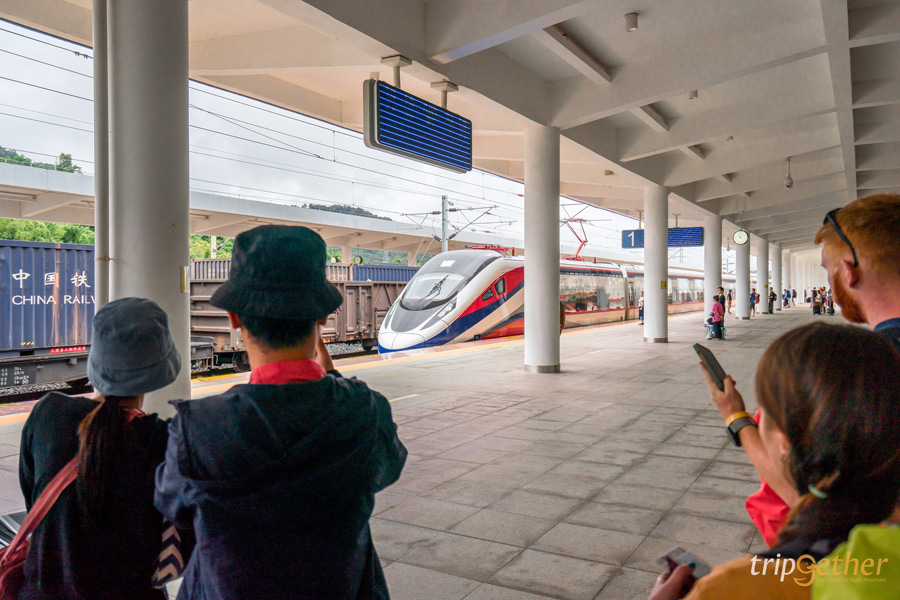 สำหรับตั๋วรถไฟความเร็วสูงจากวังเวียงไปหลวงพระบาง ราคา 135,000 กีบ (ราคามีการปรับเปลี่ยนตามอัตราแลกเปลี่ยน กรุณาตรวจสอบกับทางเอเจนซี่หรือหน้าเว็บไซต์อีกครั้ง) สำหรับทริปนี้ทางอัศวิน อินเตอร์ ทัวร์ จัดการดูแลให้หมดเลย เพียงเราแค่แจ้งสถานีต้นทาง – ปลายทาง พร้อมกับสำเนาหน้าหนังสือเดินทางเท่านั้นเอง พอได้ตั๋วมาแล้ว เราจะต้องใช้ 2 ครั้งนะ ครั้งแรกตอนเข้าสถานีต้นทาง และครั้งที่ 2 คือก่อนออกจากสถานีปลายทางจะมีเจ้าหน้าที่ตรวจตั๋วอีกครั้ง