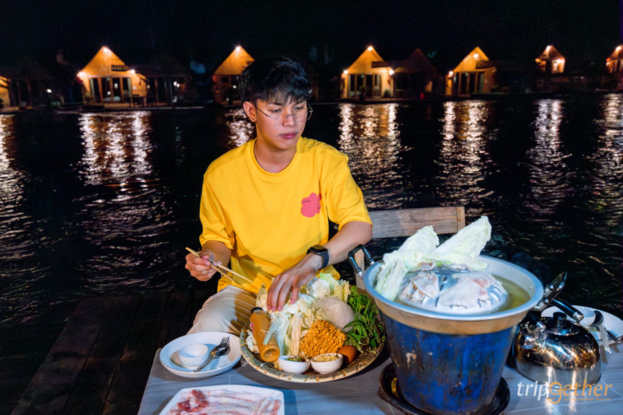 – ค่าที่พักเรือนแพวังริมน้ำ 1,200 บาท (หาร 2 ตกคนละ 600 บาท)