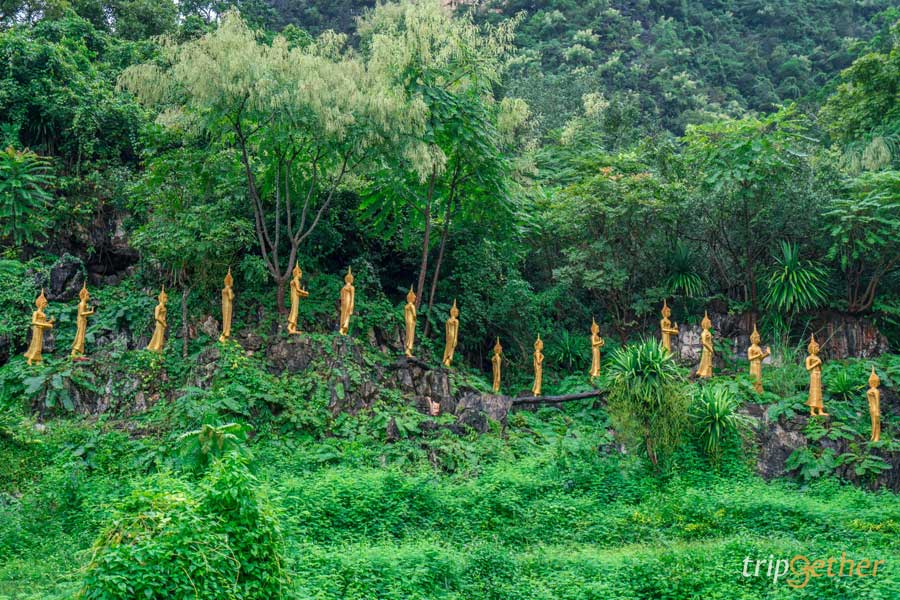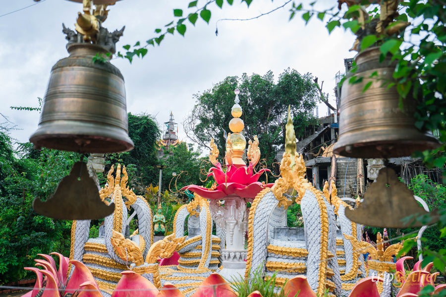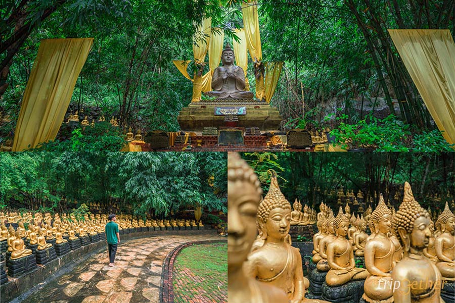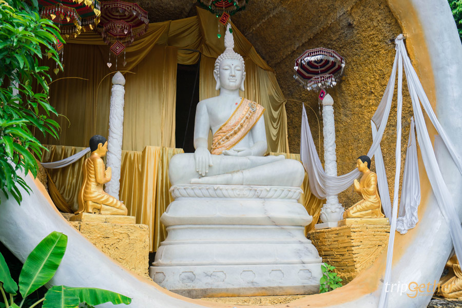 ติดกับสวนเวฬุวันจะเป็นเนินเขาที่มีซุ้มลักษณะคล้ายๆ กับหอยสังข์ แต่จริงๆ ไม่ใช่หอยสังข์นะ เพราะชาวบ้านบอกว่าเป็นรูปทรงของเปลือกหอยที่พบมากในบริเวณวัด ภายในมีพระพุทธรูปหินอ่อนที่มาจากประเทศเวียดนามตั้งอยู่ให้กราบขอพรกันด้วย