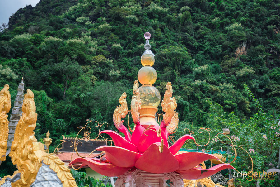 เดินมาไม่ไกลเป็นจุดที่อลังการงานสร้างแบบสุดๆ เพราะจุดนี้เรียกว่าหอราชรถ ความสวยงามของจุดนี้คือภายในอาคารเป็นงานหล่อและแกะสลักหุ่นขี้ผึ้งล้วนๆ เหมือนเป็นการจำลองสรวงสวรรค์มาให้เราได้เห็น ด้านในสุดไม่ใช่นกยูงนะ แต่เป็นแม่กาเผือกตามความเชื่อตำนานท้องถิ่นของชาวบ้าน พร้อมด้วยเครื่องสักการะบูชาที่แกะสลักจากขี้ผึ้งที่วางเรียงรายตามทางเดินและบนหิ้งบูชาพระ แถมบรรยากาศด้านในนี้เงียบสงบมากๆ เลยทุกคน