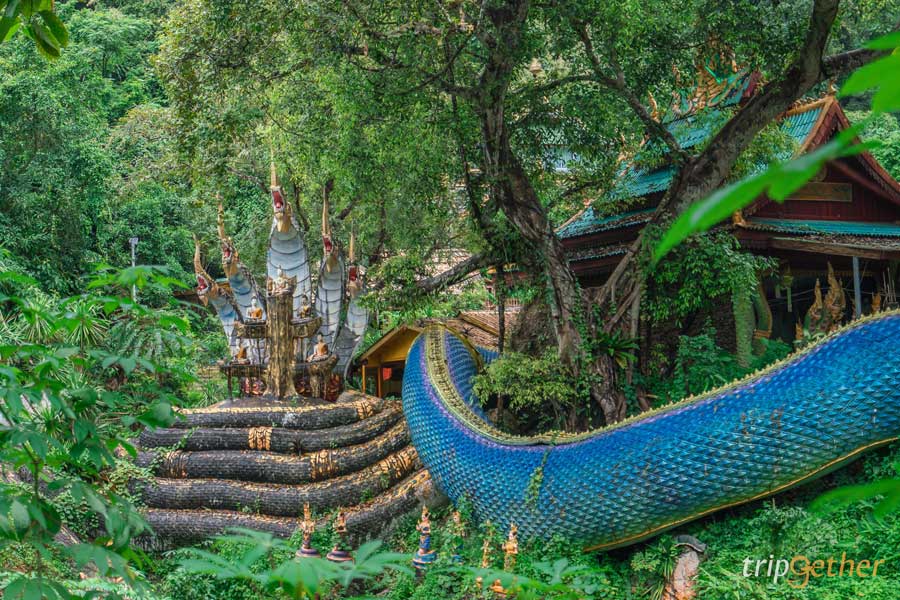 จุดที่ 2 อยู่ติดกับต้นพระศรีมหาโพธิ์เลย นั่นก็คือ พ่อปู่นันโทปนันทนาคราช ที่มีทั้งแบบองค์ร่างจำแลงและองค์พญานาค ความว้าวของจุดนี้ก็คือนี่เป็นองค์พญานาคที่ใหญ่ที่สุดใน สสป.ลาว (ปัจจุบัน) เลยนะทุกคน ลำตัวของพญานาคขดโอบรอบเนินเขาเล็กๆ ที่เราเห็นนี้เอาไว้ สวยมากๆ