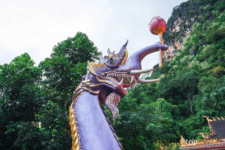 อีกหนึ่งจุดที่ต้องลองเข้าไปดูเลยก็คือฟักทองยักษ์ ที่ด้านหน้าเป็นทางเข้าที่แกะสลักเป็นลวดลายแบบหน้าคนอ้าปาก บรรยากาศด้านในทั้งเงียบและเย็น (แอบน่ากลัวเบาๆ) ซึ่งจะมีประติมากรรมปูนปั้นเป็นภพต่างๆ ที่มีทั้งบาดาล ตรงชั้นนี้จะมีรูปปั้นพญานาคจำแลง ชั้นโลกสวรรค์ที่มีเทวดาสวยงาม และชั้นนรกที่ได้เข้าไปก็ต้องมีตกใจกันบ้างเพราะมีทั้งหัวกะโหลก ต้นงิ้ว รวมทั้งรูปปั้นอื่นๆ แบบเต็มสูตร
