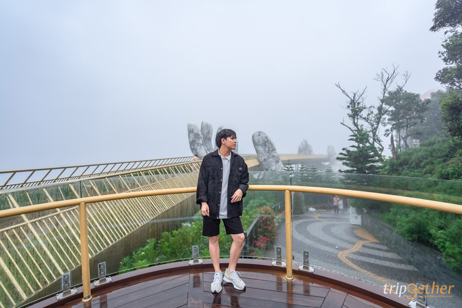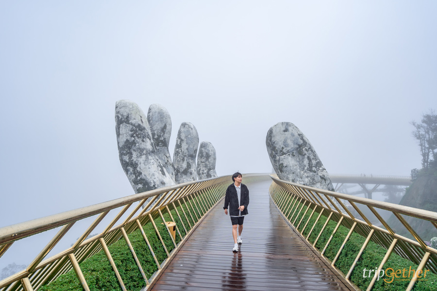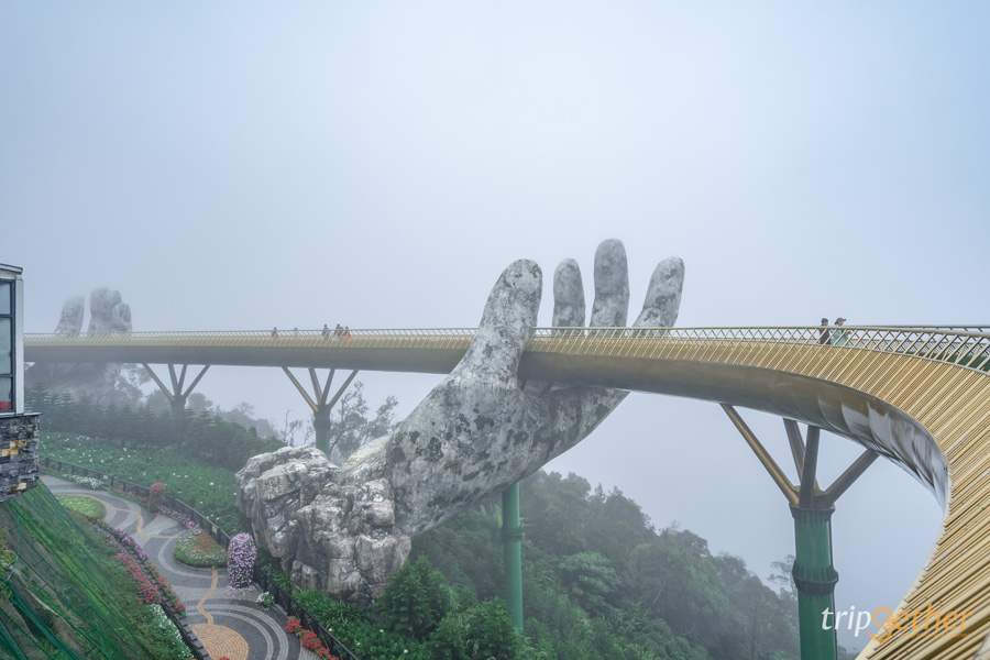 นอกเหนือจากพื้นที่หมู่บ้านฝรั่งเศสที่ตั้งอยู่ด้านบนยอดเขาแล้ว ถัดลงมาด้านล่าง (ซึ่งจะต้องนั่งกระเช้าลงมาอีกหนึ่งระดับ) เป็นที่ตั้งของโลเคชั่นชื่อดังที่เป็นไฮไลท์อีกอย่างของบานาฮิลล์เลยก็คือ สะพานมือยักษ์ (Golden Bridge) สะพานขนาดใหญ่ที่ยื่นออกไปเหนือแนวเขาโดยมีขนาดยักษ์ 2 ข้างมารองรับเอาไว้ ถือว่าเป็นจุดถ่ายรูปที่สวยงามเป็นที่สุด (แต่ด้วยช่วงที่เราไปเป็นช่วงที่มีพายุเข้าพอดี เลยทำให้มองไม่เห็นวิวภูเขาและเมืองดานังด้านล่าง)