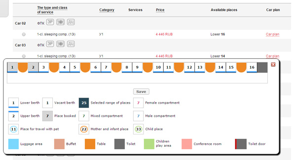 หลังจากที่เลือกรถไฟได้แล้วว่าจะไปแบบไหน ต่อไปก็เลือก ตู้รถไฟ (car) ถ้าขึ้นที่ Moscow Car เลขเยอะๆ จะอยู่ติดประตูทางออกจากสถานีค่ะ แต่ถ้า Car เลขน้อยๆ ก็จะอยู่นู้นค่ะ หัวขบวนเลย วิ่งหอบแห่กๆ เมื่อเลือก Car ได้แล้วก็มาเลือก Berth เสร็จแล้วเลือกอาหารเช้า (ไม่มีภาษาอังกฤษนะคะ Google Translate รัวๆ) จ่ายตัง print ตั๋ว เสร็จแล้วค่ะ