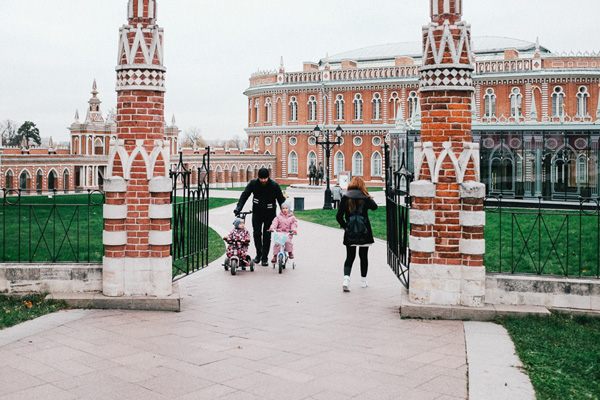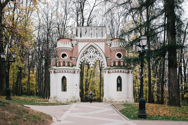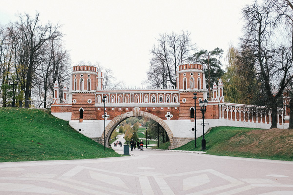 Tsaritsyno เข้าได้ 2 ทาง คือ Orekhovo (Орехово) และ Tsaritsyno (Царицыно) ถ้าเข้าทาง Orekhovo (Орехово) จะเจอป่าก่อน ไม่ต้องตกใจนะคะ ไม่ได้มาผิด เดินตามทางไปเรื่อยๆ เดี๋ยวก็ถึง Grand Palace ค่ะ และออกทาง Tsaritsyno (Царицыно)