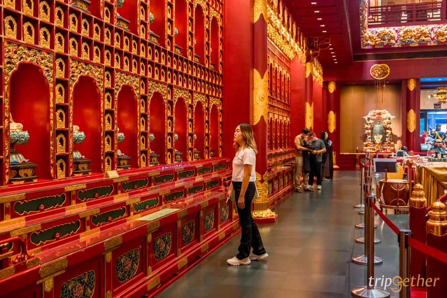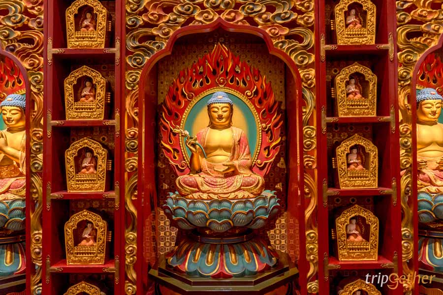 วัดพระเขี้ยวเเก้ว สิงคโปร์ มีความงดงามเป็นเอกลักษณ์มากๆ อาคารสีแดงสดสวยงามตามแบบสถาปัตยกรรมจีนสมัยราชวงศ์ถัง สร้างขึ้นเพื่อเป็นที่เก็บพระบรมสารีริกธาตุของพระพุทธเจ้า ซึ่งคือ พระทันตธาตุ หรือ ฟันของพระพุทธเจ้า วัดแห่งนี้เลยได้ชื่อว่า “Buddha Tooth Relic Temple” หรือ วัดพระเขี้ยวแก้ว นั่นเอง