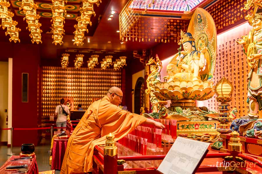 และไฮไลท์คือ ชั้นที่ 4 ที่ภายในจะประดิษฐาน พระทนต์ (ฟัน) ของพระพุทธเจ้า ซึ่งอยู่ในสถูปใหญ่อันศักดิ์สิทธิ์ เป็นที่เคารพสักการะ โดยคนที่นี่เชื่อกันว่าถ้ามากราบไหว้ขอพรแล้วจะทำให้โชคดีและเป็นสิริมงคลแก่ชีวิต ชาวสิงคโปร์และพุทธศาสนิกชนส่วนใหญ่ นิยมมาเดินเวียนเทียนรอบๆ พระเขี้ยวแก้ว รวมถึงนั่งสมาธิ สวดมนต์ ซึ่ง สามารถกราบไหว้พระเขี้ยวแก้วได้เฉพาะพื้นที่ที่ทางวัดจัดไว้ให้เท่านั้น เพราะด้านในหอพระธาตุอนุญาตให้เฉพาะพระสงฆ์เข้าไปได้ และเป็นส่วนที่ไม่อนุญาตให้ถ่ายภาพอีกด้วย