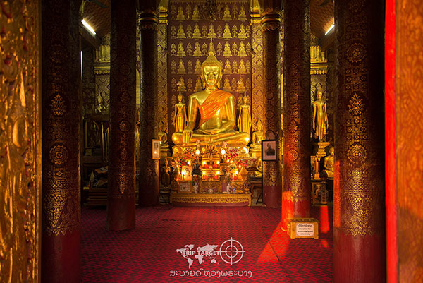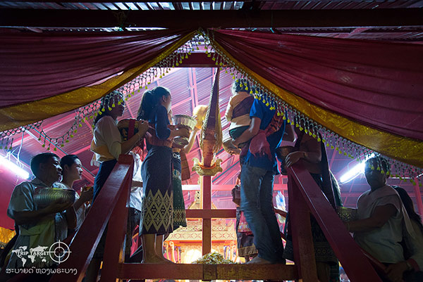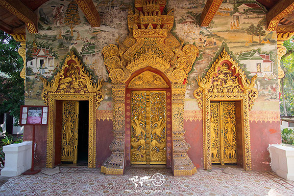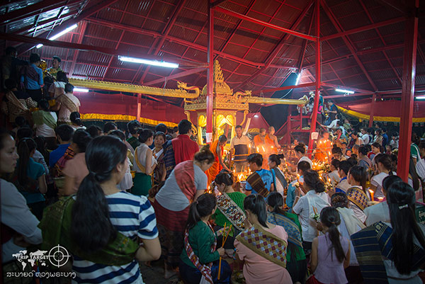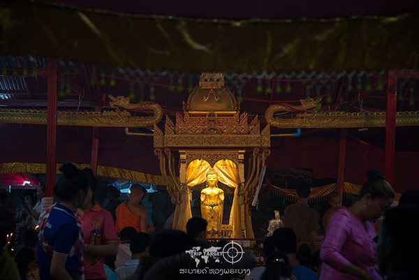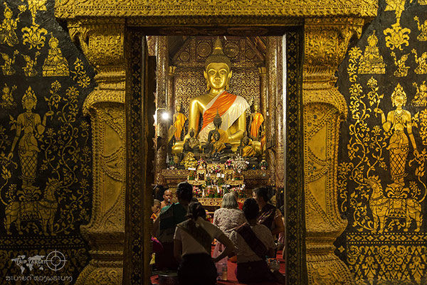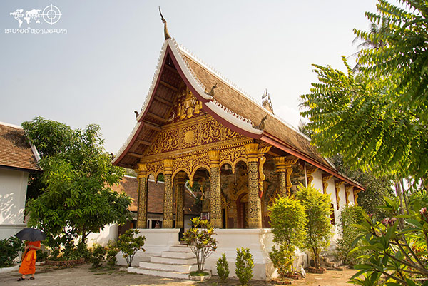 เข้าห้องพักจัดแจงเก็บข้าวของเรียบร้อย เช็คเป้าหมายแรกที่อยากไปคือวัดเซียงทอง ซึ่งเป็นหนึ่งในสัญลักษณ์ของเมืองและได้ชื่อว่าเป็นวัดที่มีสถาปัตยกรรมสวยงามที่สุดของหลวงพระบาง จากที่พักไประยะทางไม่ไกลมาก เลยตัดสินใจว่าจะเดินไป ขากลับค่อยเหมารถกะป๊อไปร้านอาหาร พอไปถึงที่วัด ก็เจอกับผู้คนมากมาย หนุ่มสาวลาว ห่มสะไบเดินกันขวักไขว่ เพราะวันนี้เป็นวันที่วัดจัดพิธีสรงน้ำพระม่าน ซึ่งเป็นพระที่คล้ายกับพระบาง แต่ประดิษฐานภายในวัดเซียงทอง โดยทางวัดได้อัญเชิญพระม่านออกมาให้ประชาชนกราบไหว้และสรงน้ำเพื่อเป็นสิริมงคล ถือเป็นโชคดีของผมและน้องที่มาตรงกับวันงานพิธีนี้พอดิบพอดี