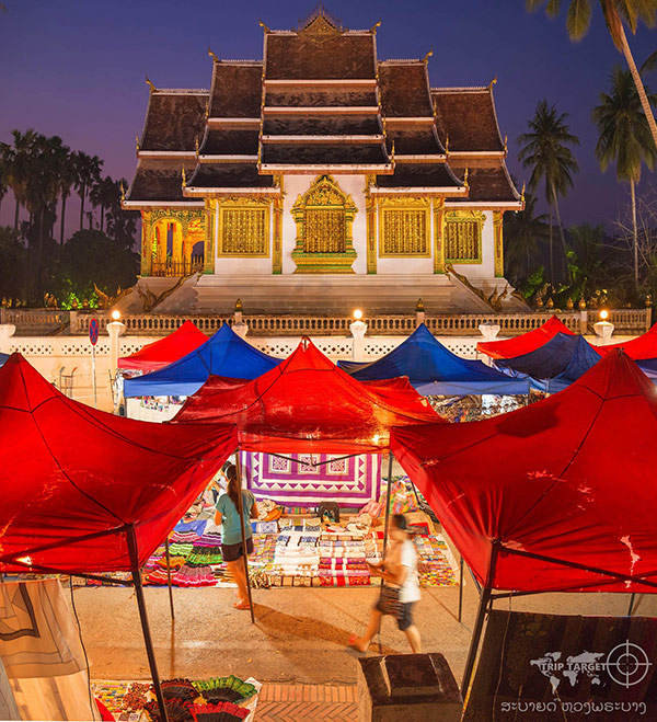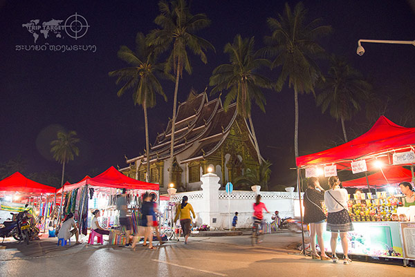 เสร็จแล้วก็ไปถ่ายภาพยามค่ำบริเวณถนนคนเดินกันต่อ ภาพที่สวยงามของบริเวณนี้คงเป็นหอพระบางกับเต็นท์ขายของหลากสีนี่แหละครับ
