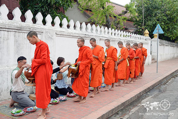 นักท่องเที่ยวตักบาตรเป็นหมู่คณะ