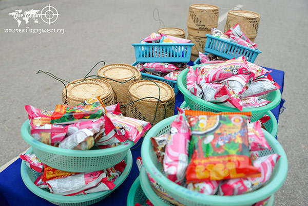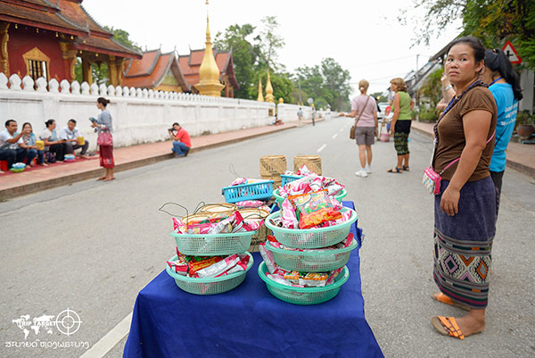 วันที่ 2 ผมตืนแต่เช้าตรู่ เพราะตั้งใจจะตักบาตรข้าวเหนียว ลงมาหน้าโรงแรมก็เจอนักท่องเที่ยวกำลังตักบาตรและมีแม่ค้าขายกะติ้บข้าวเหนียวพร้อมกับขนมให้ตักบาตร ผมกะน้องก็เลยซื้อมาคนละชุด พระเดินมาเร็ว+หลายรูปมาก ข้าวเหนียว และขนมถูกหยิบใส่บาตรพระอย่างรวดเร็ว ใช้เวลาไม่นานก็หมด แม่ค้ายังมีแอบมาวางขนมให้อีก ต้องบอกว่าบ่เอาแล้วจ้าววว