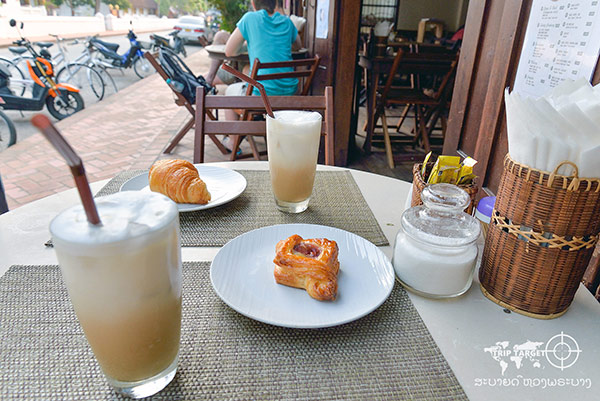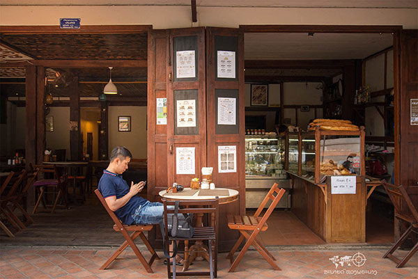 ถ่ายภาพอยู่หน้าวัดสักพัก ก็ซื้อข้าวเหนียวตักบาตรคนละกะติ๊บ ก่อนจะแวะไปทานกาแฟกับขนมปังที่ร้าน Le Banetton ขนมปังโอเคครับอร่อยดี บรรยากาศร้านมีความคลาสสิก ถ่ายรูปสวย
