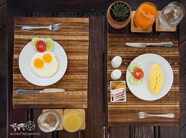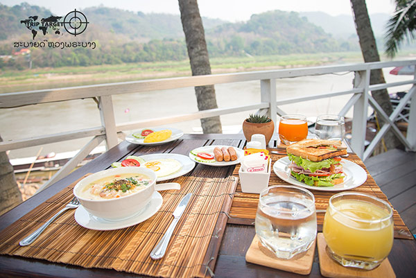 ออกจากร้านก็กลับไปที่โรงแรมเพื่อทานอาหารเช้าครับ หนึ่งในจุดเด่นของโรงแรม The Belle Rive คงเป็นส่วนรับประทานอาหารเช้าที่ตั้งอยู่ริมแม่น้ำโขง อาหารเช้าจะเป็นแบบเมนูให้เลือกสั่งได้ เมนูอาจจะไม่หลากหลายมาก ผมสั่งข้าวต้ม ส่วนน้องสั่งแซนด์วิช รสชาติอร่อยดีครับ นั่งทานไปชมสายน้ำโขงยามเช้าไป มันสุขแท้ๆ อะฮืมมม