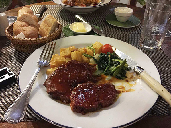 ออกจากวัดเซียงทองช่วงหัวค่ำ ผมเหมารถกะตุ๊กตุ๊กไปส่งร้านอาหาร L elephant (อ่านว่า เลเลฟอง) เป็นร้านอาหารแนะนำของหลวงพระบางเลยทีเดียว อาหารอร่อยแต่ราคาค่อนข้างสูง(เฉลี่ยจานละ 4-500)
