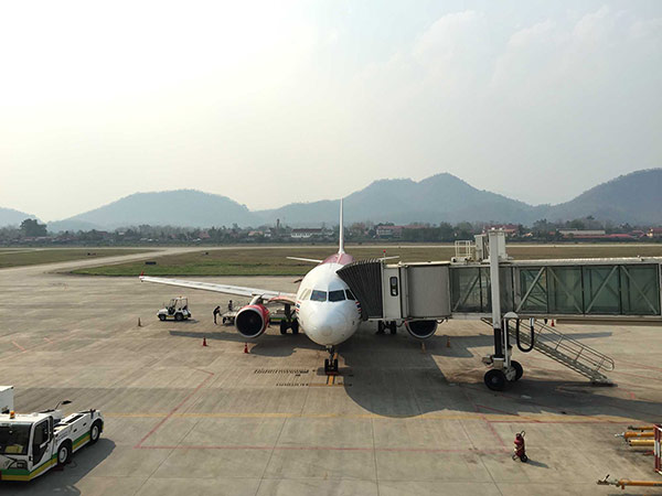 วันเดินทาง 24 เม.ย. ผมขึ้นเครื่องออกจากดอนเมือง 14:10 ถึงสนามบินหลวงพระบาง 15:30 (เวลาที่หลวงพระบางและไทยตรงกัน จึงไม่ต้องปรับนาฬิกาใดๆ) สัมผัสแรกหลังออกจากเครื่องบิน ตอนแรกก็เผื่อใจไว้แล้วว่าคงร้อน แต่ออกจากเครื่องปั๊บ ก็รู้สึกถึงลมที่พัดเข้าหน้า ทำเอาหน้าสั่น หนาวหรอ?? … ร้อนจนหน้าสั่นมั้ยยยย กทม.ว่าร้อนแดดแล้ว เจอลมร้อนที่นี่พัดมาที ทำเอาขนลุกซู่ เดินเข้าไปด้านในอาคารผู้โดยสารกะว่ารอดตายแล้วตรู แต่สิ่งที่เจอเลวร้ายกว่าคือ …”สนามบินไม่มีแอร์”  หืออออออ คือไรว่ะครับ นโยบายประหยัดไฟหรืออย่างไร มันช่างจ้าาาา ซะเหลือเกิน