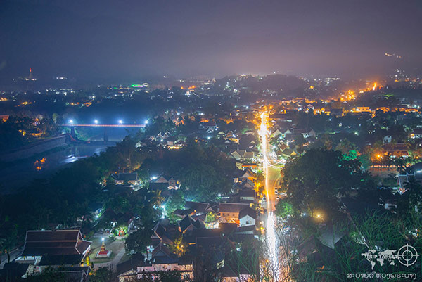 ออกจากหอพระบาง จะเจอทางขึ้นภูสี ซึ่งเป็นจุดชมวิวเมืองหลวงพระบางที่สวยที่สุด อยู่ฝั่งตรงข้ามถนน “ภูสี”เป็นภูเขาที่อยู่ใจกลางเมือง ด้านบนเป็นที่ตั้งของพระธาตุภูสี ทางขึ้นมี 2 ทาง คือฝั่งแม่น้ำคาน กับทางหอพระบาง มีบันไดทั้งหมด 328 ขั้น ทางไม่ชันมาก แต่ก็เหนื่อยเอาเรื่องสำหรับคนไม่ค่อยได้ออกกำลังกายแบบผม 555 แถมเพิ่งจะขาตึงจากการเดินขึ้นน้ำตก มาขึ้นเขาอีก ขางี้สั่น หายใจหอบ นั่งพักจนอายคนแก่ทีเดียว เดินขึ้นไปถึงยอดภูสี พบว่ามีผู้คนไปรอชมพระอาทิตย์ตกกันเยอะมากกกก สำหรับคนชอบถ่ายภาพ คิดว่าอาจจะผิดหวังเล็กน้อย เพราะทิศตะวันตกอยู่ทางฝั่งแม่น้ำโขง ซึ่งวิวไม่สวยนัก และมีต้นไม้บังค่อนข้างเยอะ จุดที่วิวสวยกลับเป็นทิศตะวันออกที่เห็นวิวเมืองกับแม่น้ำคานมากกว่า ผมกับน้องชายชอบถ่ายภาพกันอยู่แล้ว จึงอยู่บนภูสีถึงทุ่มกว่า ค่อนข้างมืด แต่ก็ยังมีคนอยู่หลายคน