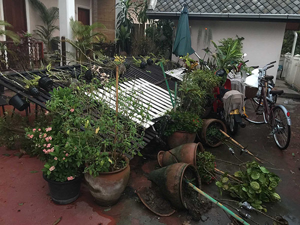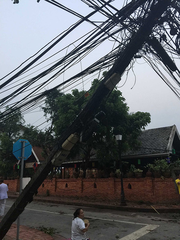 อื้อหือ พายุจริงไรจริง พัดซะเสาไฟฟ้าโค่น แล้วโค่นหน้าโรงแรมตรูซะด้วย