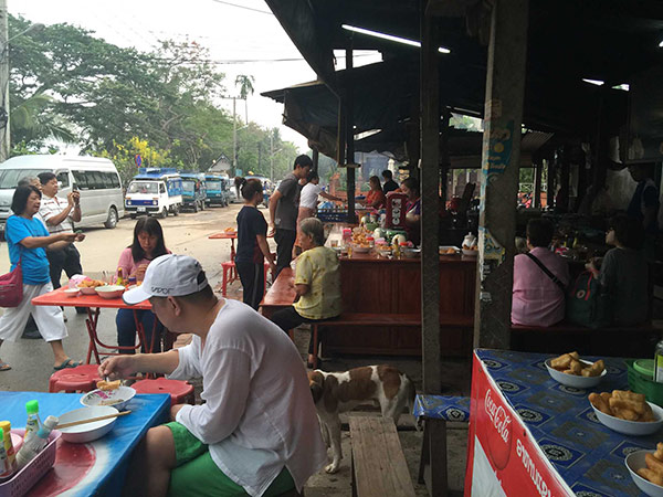 เช้าวันสุดท้ายก่อนกลับไปเผชิญโลกความเป็นจริง ผมและน้องปั่นจักรยานออกไปตักบาตรข้าวเหนียวที่หน้าวัดแสนสุขาราม จุดนี้จะเป็นจุดที่มีนักท่องเที่ยวมาตักบาตรข้าวเหนียวกันเยอะ น่าจะเยอะที่สุดในเมืองแล้วล่ะ ปั่นไปถึงหน้าวัดก็เจอกล้อง ทั้งภาพนิ่งและวิดีโอกำลังรุมถ่ายคนกลุ่มนึงอยู่ ใครอะ ดารารึเปล่า หรือว่านักร้องเกาหลี หรือดีเจโซดาาา อย่ากระนั้นเลย งัดวิชาไทยมุงเดินไปถ่ายภาพใกล้ๆกะเค้าด้วย แล้วก็พบว่ากลุ่มคนที่เจอ คือซุปตาร์เมืองไทยเรา แก๊งเทยเที่ยวไทยนี่เอง