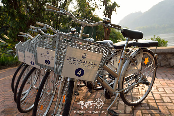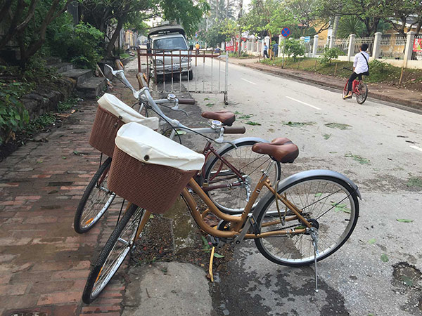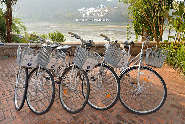 ออกจากวัด ก็ปั่นจักยานเที่ยวชมบ้านเรือน ต้นไม้ ริมแม่น้ำโขง ก่อนกลับไปที่พัก ทานอาหารเที่ยงในโรงแรม