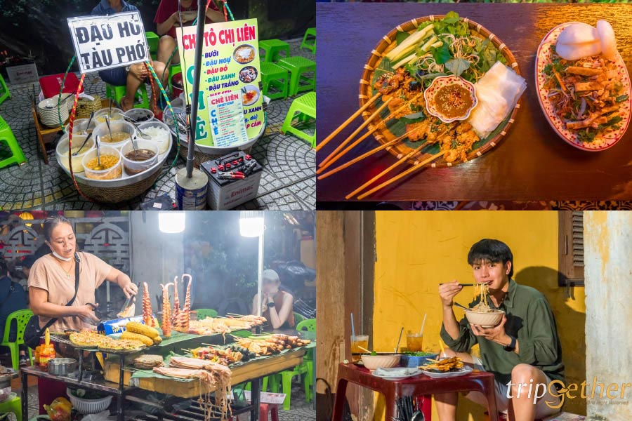 เพราะกองทัพต้องเดินด้วยท้องเราจึงต้องแวะกินอาหารจานหลักกันสักหน่อยที่ร้าน Quan An Co Phuong กับเมนูหมี่กว๋าน ก๋วยเตี๋ยวพื้นบ้านของฮอยอัน เส้นสีเหลืองทำมาจากขมิ้น เหนียว หนา นุ่ม อร่อยสุดๆ และอีกเมนูคือข้าวสมุนไพรหมูแดงของเวียดนามแท้ๆ ถ้าพูดถึงเรื่องร้านก๋วยเตี๋ยวพื้นบ้านหรือเกาเหลาที่ฮอยอันนั้นอร่อยขึ้นชื่อมาก เส้นของที่นี่สัมผัสจะต่างจากเส้นที่อื่นๆ เพราะว่าส่วนใหญ่คนในพื้นที่แทบจะทุกบ้านทำเส้นกันเอง ทั้งเก็บไว้กินในครอบครัวและก็ยังทำไว้ขายอีกด้วย