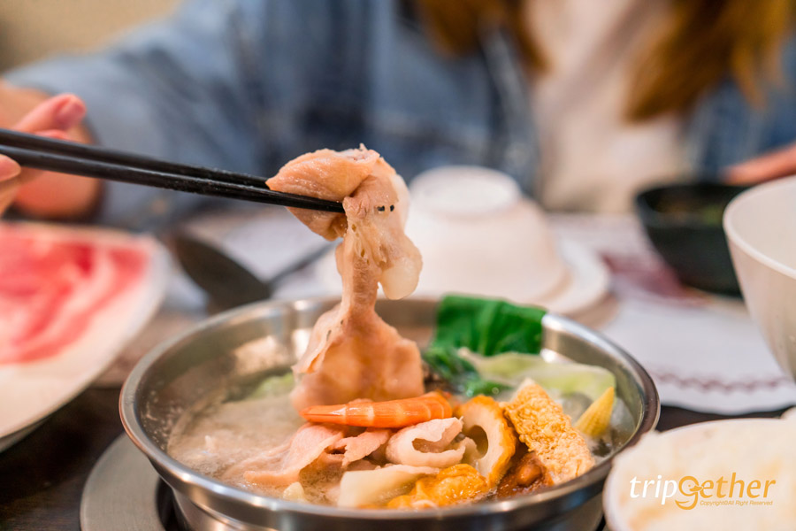 เดินทางมาถึงมื้อเย็น เราพามาเติมพลังกันด้วยร้าน Shang Pin Wu Exquisite Shabu Shabu เราเลือกสั่งเป็นชุดชาบูแยกหม้อ ที่มีให้เลือกแบบหลากหลาย สำหรับสายเนื้อสัตว์ สายซีฟู้ด มีทั้งผักท้องถิ่นและผักนำเข้าหลายชนิด เมนูจะมาแบบเป็นเซ็ต สำหรับคนไทยที่มา เที่ยวไต้หวัน อย่างเราสิ่งที่ขาดไม่ได้ในการกินชาบูเลยก็คือน้ำจิ้ม ซึ่งทางร้านมีน้ำจิ้มให้เพื่อนๆ ได้โชว์ฝีมือปรุงเองตามใจชอบ แต่สำหรับใครที่ไม่เคยปรุงทางร้านมีพนักงานบริการที่มีความเชี่ยวชาญในการช่วยปรุงอาหารและแนะนำการจับคู่รสชาติน้ำจิ้มที่ลงตัว